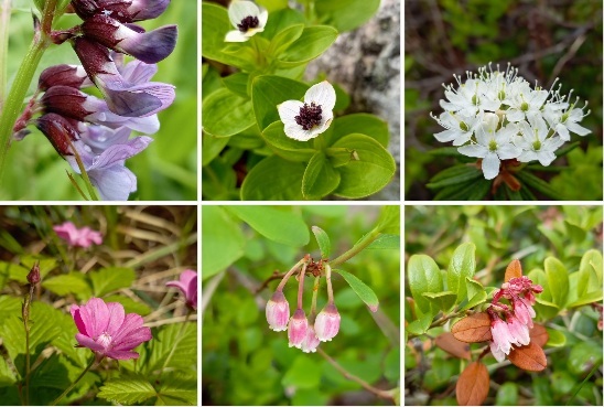 На лугах расцветает горошек заборный. В тенистых и влажных уголках леса, у водоёмов, пышно цветут дёрен шведский и багульник болотный. Княженика и голубика уже в полном цвету, а брусника только набирается силы.
